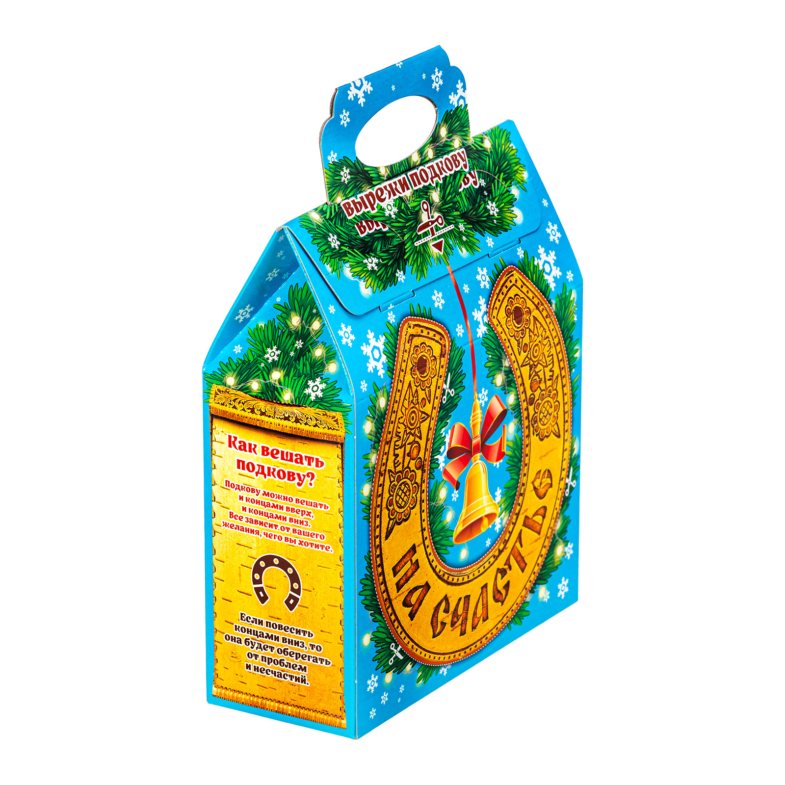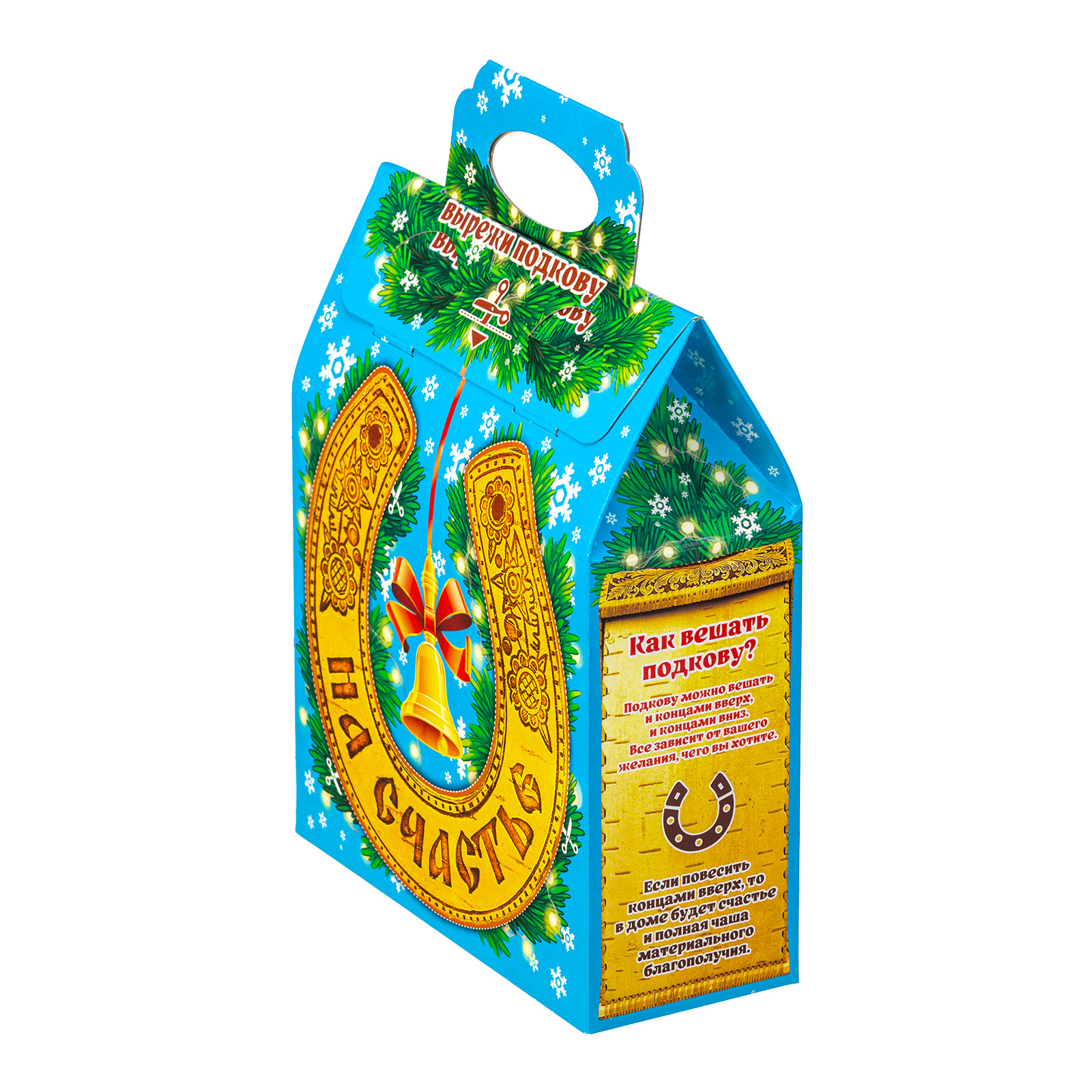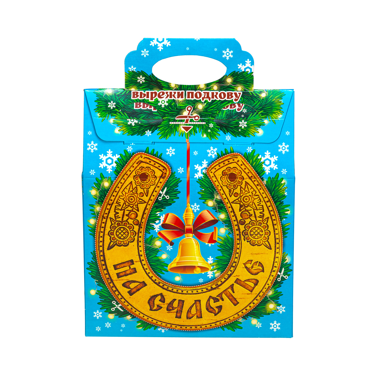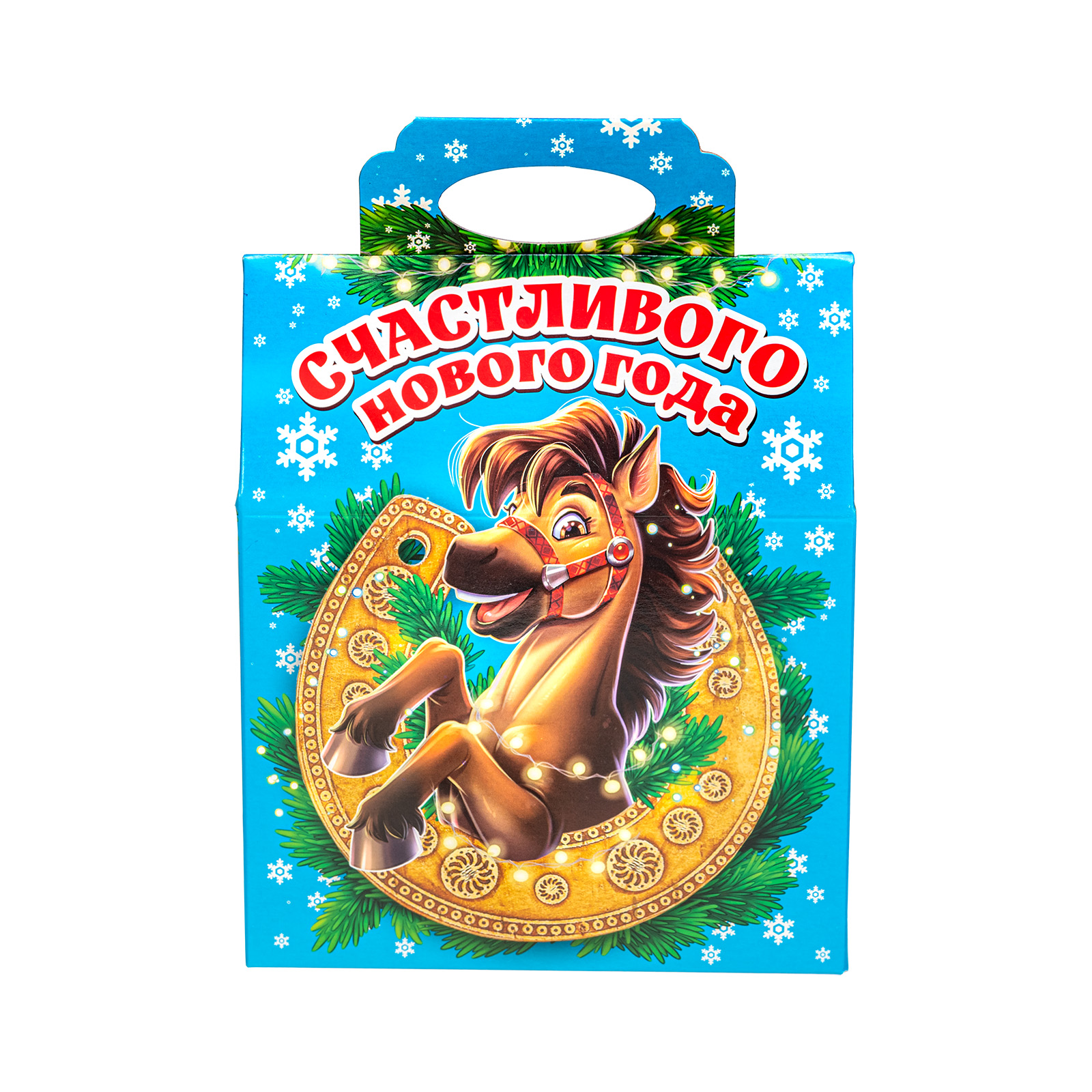 Новогодние сладкие подарки в картонной упаковке, благодаря своей практичности уже не первый год пользуются спросом. Набор “Гришаня” - это прекрасный выбор подарка для праздника в школе или детском саду. 700 грамм разнообразных вкусных сладостей, бережно упакованных в небольшую яркую коробочку с удобной ручкой - что еще нужно для счастья! Упаковка по форме напоминает небольшой почтовый ящик светло-голубого цвета. На передней части есть яркий рисунок с символом наступающего года - задорным жеребцом, выглядывающим из большой золотистой подковы. Подкова с древних времен считается мощным оберегом для дома, поэтому сбоку есть небольшой справочный материал, который позволит вам узнать нечто большее об этой занятной вещице. Так что иногда сладости могут быть не только вкусными, но и полезными!