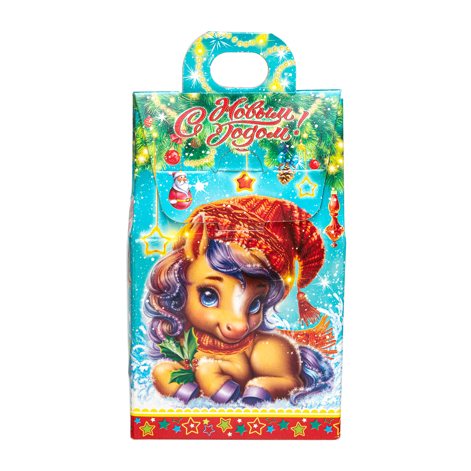 Несмотря на небольшой размер, новогодний сладкий подарок “Шалунишки” способен вызвать неподдельный восторг у маленьких сластен. В его состав входит 200 грамм разнообразных вкусных сладостей с мягкой начинкой и небольшой памятный сувенир-магнитик. Все это бережно помещено в небольшую картонную коробочку с изображением символов наступающего года - милых волшебных лошадок. Этот небольшой набор станет прекрасным выбором, если  вы ищете новогодние сладкие подарки для утренника в детском саду - малыши точно останутся довольны!